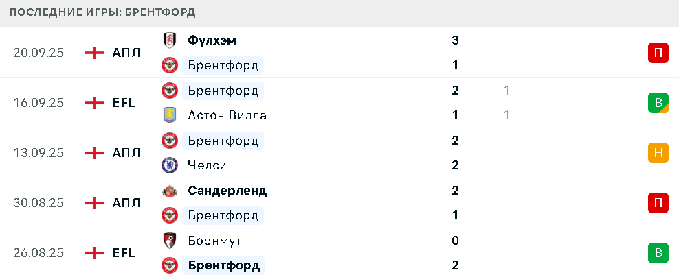 Последние игры Брентфорда