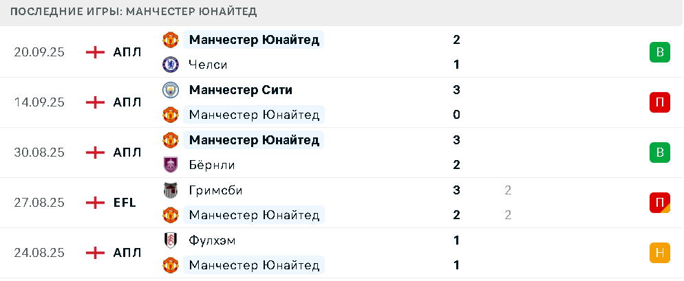 Последние игры Манчестер Юнайтед