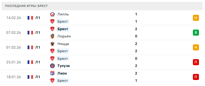 Последние игры Бреста