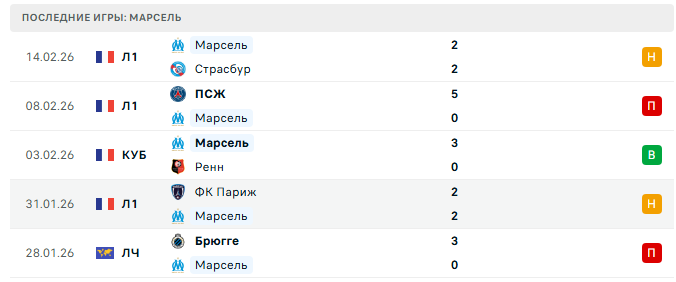 - 08.11.25 Марсель — Брест 3-0