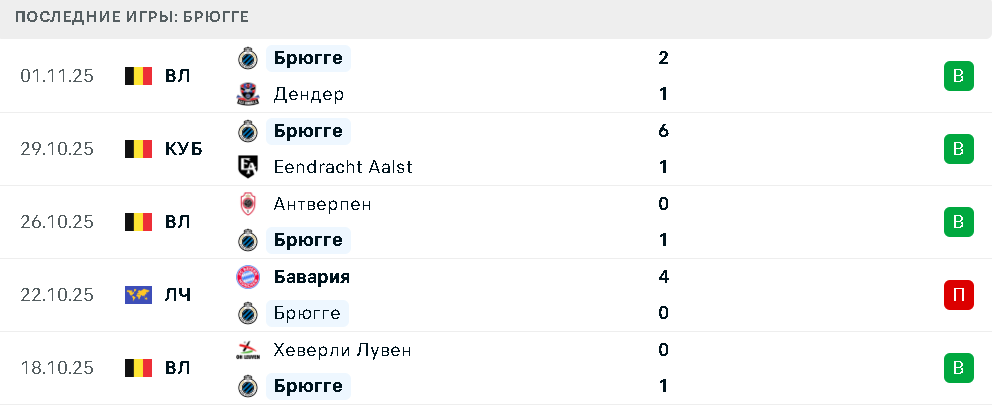 - Брюгге одержал 5 побед в 6 последних матчах.