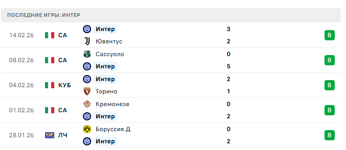 Форма команд идет в разные стороны по мотивации. Буде провел невероятный январь: разгромил Манчестер Сити 3:1, выиграл у Атлетико 2:1 на выезде, сыграл вничью с Боруссией 2:2. Норвежцы не играют чемпионат до марта, все силы на еврокубки. Интер стабилен в Серии А, идет первым, но в ЛЧ были провалы — поражения от Арсенала 1:3 и Ливерпуля. Зато в выездных матчах нерадзурри безупречны: три победы подряд.