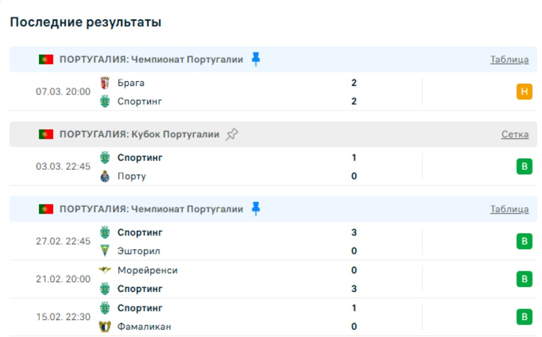 Последние игры Спортинга