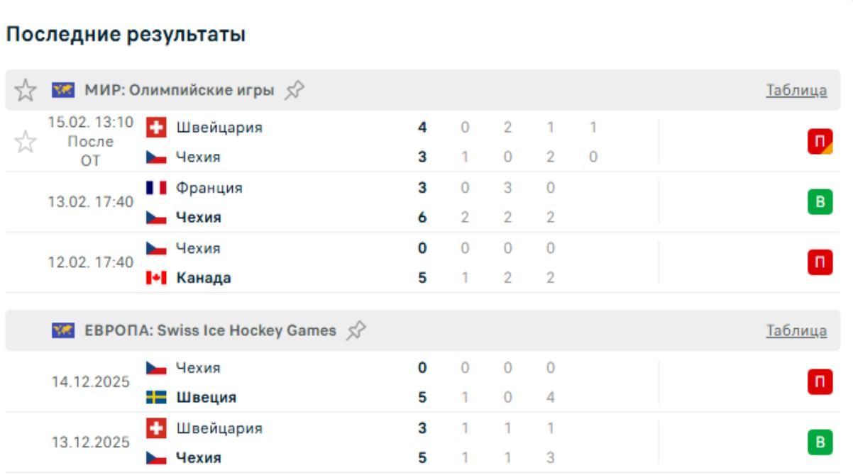 В поединке против Швейцарии чехи открыли счет, но затем постоянно были в роли догоняющих. За две минуты до финальной сирены перевели игру в овертайм, где потерпели поражение — 3:4.