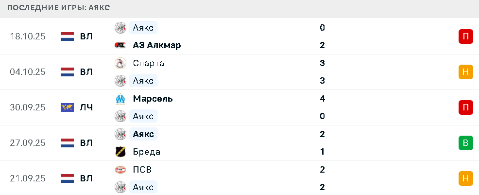 В пяти последних матчах в разных турнирах Аякс одержал всего одну победу над Бредой. Также за это время команда потерпела поражения от Марселя и АЗ Алкмаара и сыграла вничью с ПСВ и Спартой.