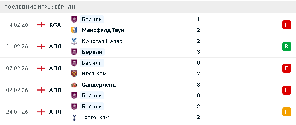 Последние игры Бернли