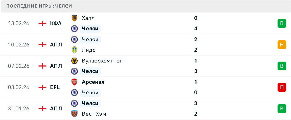 Последние игры Челси