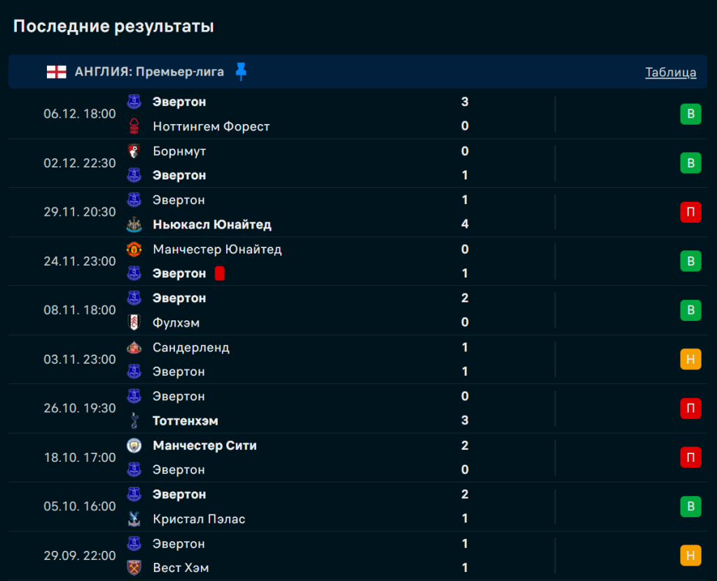 - «Эвертон» выиграл 4 из 5 последних матчей