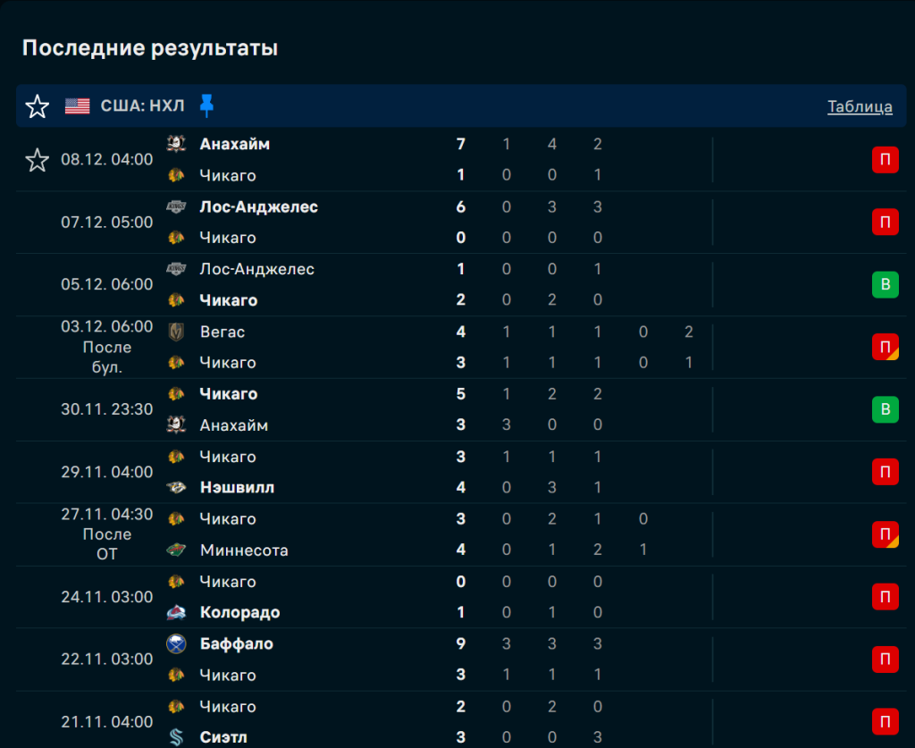 Последние игры Чикаго