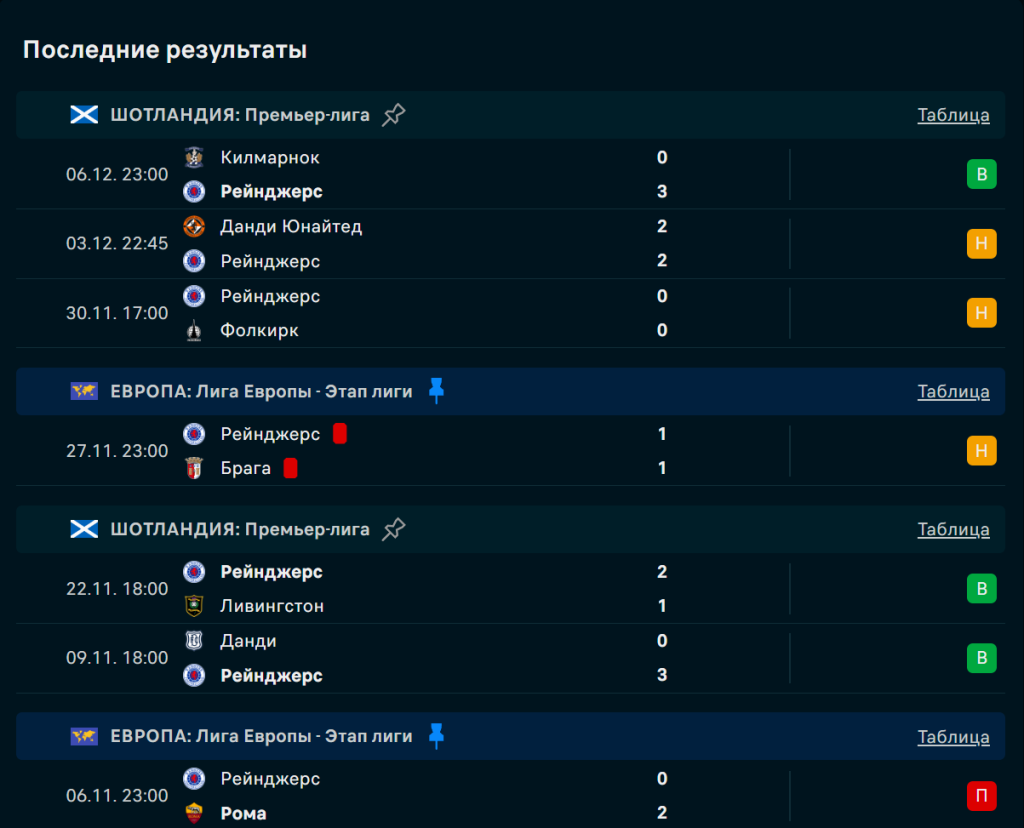 Последние игры Нью-Йорк Рейнджерс