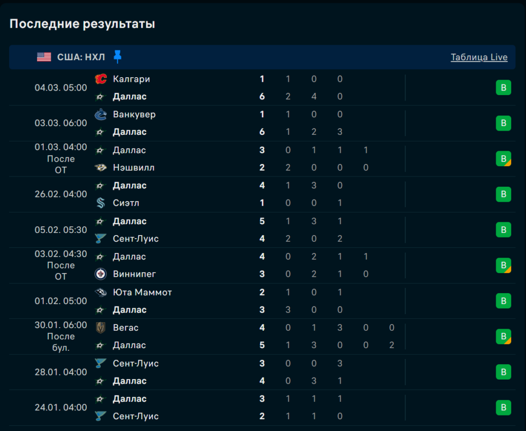 У этой пары есть неприятная для хозяев привычка: «Чикаго» периодически цепляет матчи за счёт терпения и контратак. Недавняя очная игра закончилась победой «Чикаго» 4:3, и там «Даллас» не удержал ритм в концовке. При этом в Техасе «Старз» играют с «Блэкхокс» увереннее и чаще давят сменами, не давая гостям длинных владений. Если «Даллас» не подарит удалениями и потерями лёгкие входы в зону, перевес по моментам обычно на стороне хозяев.