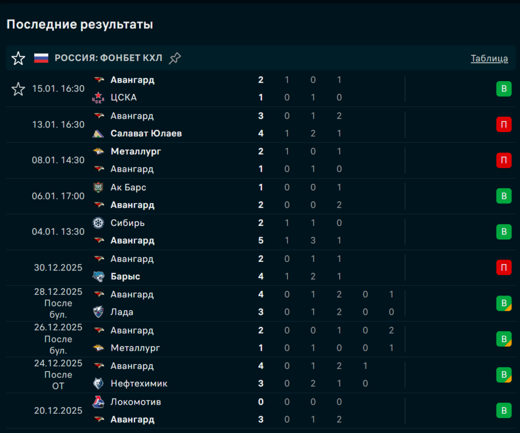 «Авангард» одержал уверенную победу над «ЦСКА» (2:1), «Сибирью» (5:2) и «Ак Барсом» (1:2), но продул«Металлургу» (1:2) и «Салавату» (3:4). Несмотря на потери, команда сохраняет высокую результативность, однако дисциплинарные провалы в ключевых моментах подрывают стабильность. В трёх из пяти последних матчей соперники реализовывали более одного большинства.