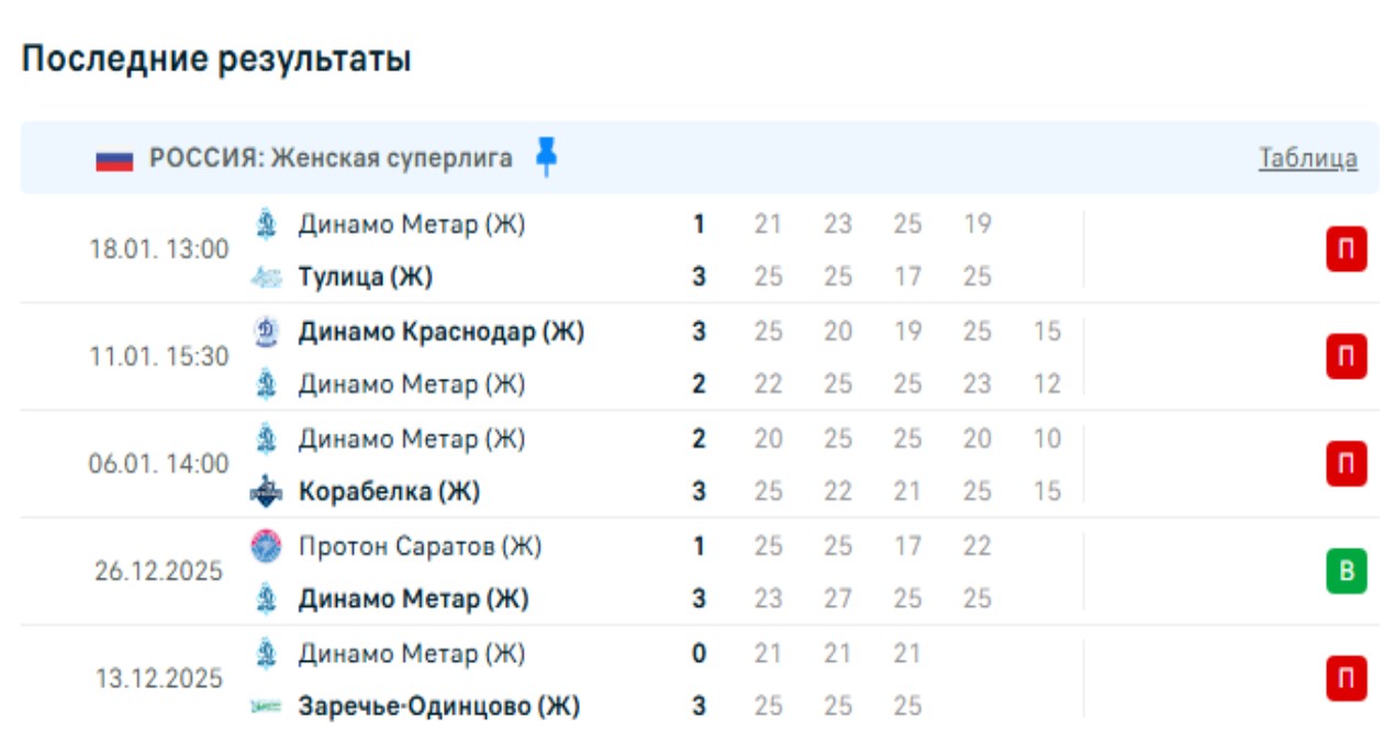 У коллектива из Челябинска 1 победа в предыдущих 6 турах. Сейчас Динамо-Метар занимает 11 место в Суперлиге с 17 очками. От Тулицы, идущей на пятой строчке в зоне плей-офф, подопечные Алексея Дешина отстают на 2 победы.
