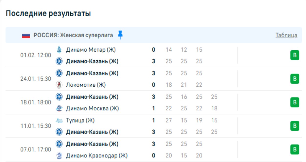 Статистика личных встреч Динамо-Казань — Уралочка-НТМК