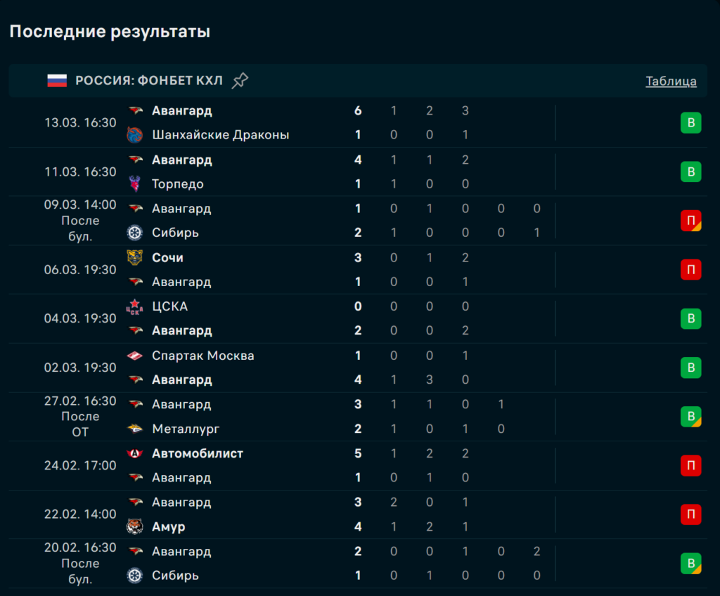 Последние игры Авангард