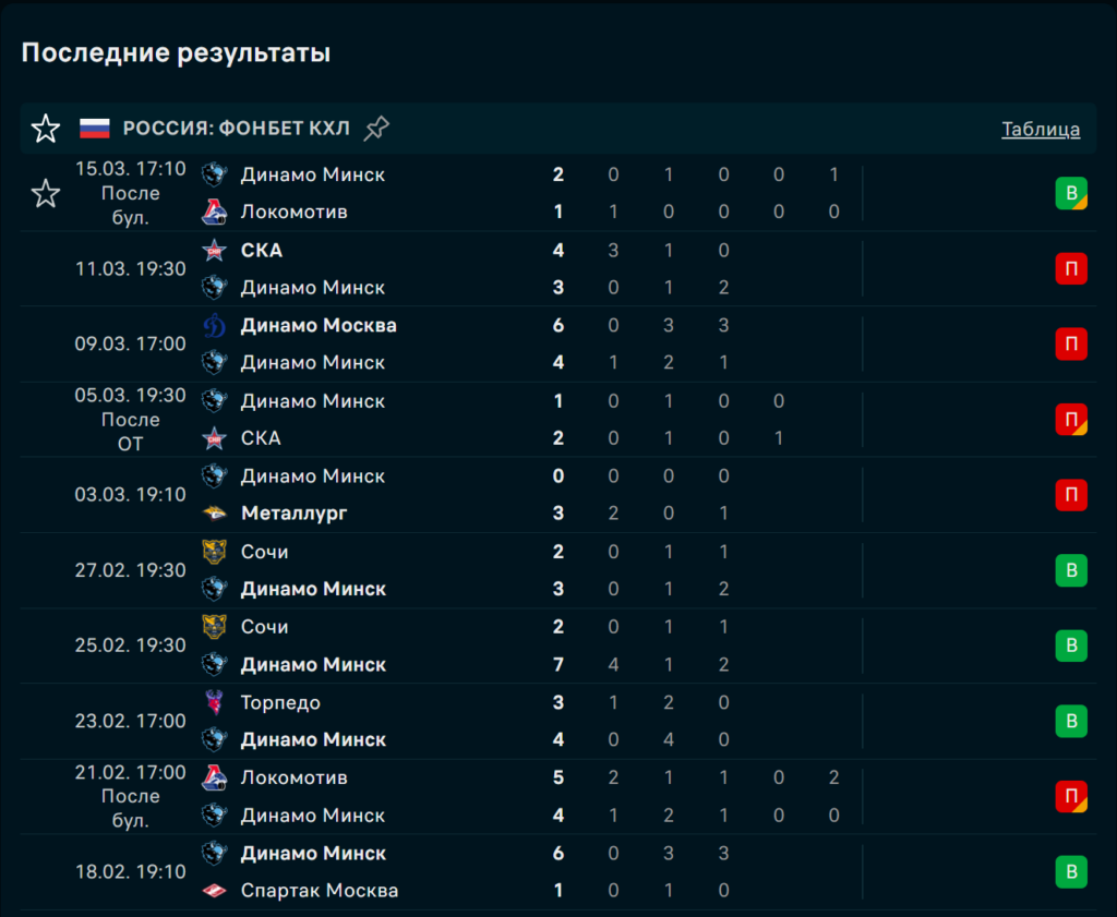 Минчане проиграли СКА и московскому «Динамо», причём оба раза допустили слишком много в своей зоне. До этого дважды уверенно разобрались с «Сочи» и забрали выезд к «Торпедо НН». Даже на фоне поражений атака продолжала создавать и забивать, а это для нашей ставки важнее, чем сухая общая форма.