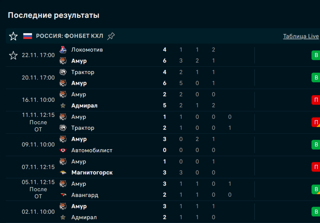 Последние игры команды Амур