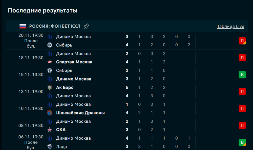Последние игры команды Динамо Москва