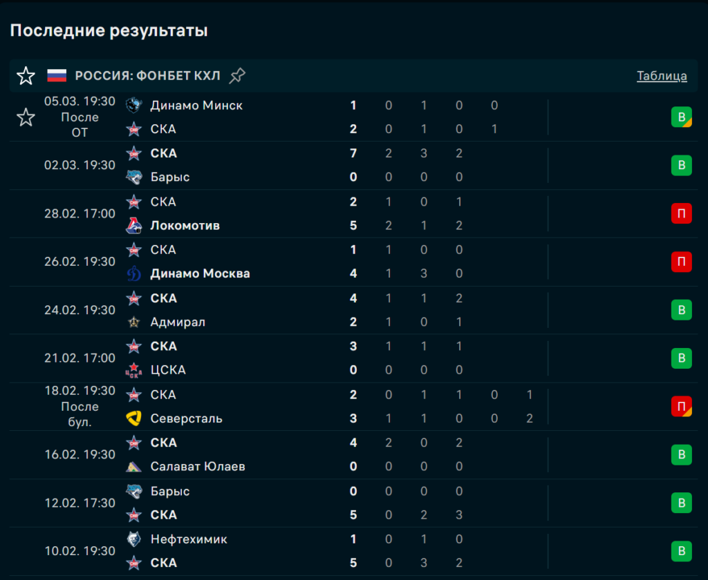 Последние игры СКА