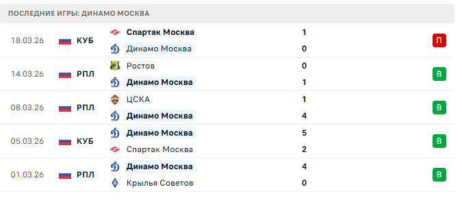 Последние игры Динамо Москва