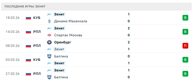 По форме последних туров Динамо выглядит ярче. Разгром ЦСКА 4:1, кубковая победа над Спартаком 5:2 — команда забивает много и охотно. Зенит же в марте берёт своё минимальными победами: 1:0 над Динамо Махачкала, 2:0 над Спартаком, до этого неожиданное поражение от Оренбурга 1:2. Оренбург показал, что у Зенита есть вопросы к реакции на интенсивный прессинг. Динамо прессингует не хуже.