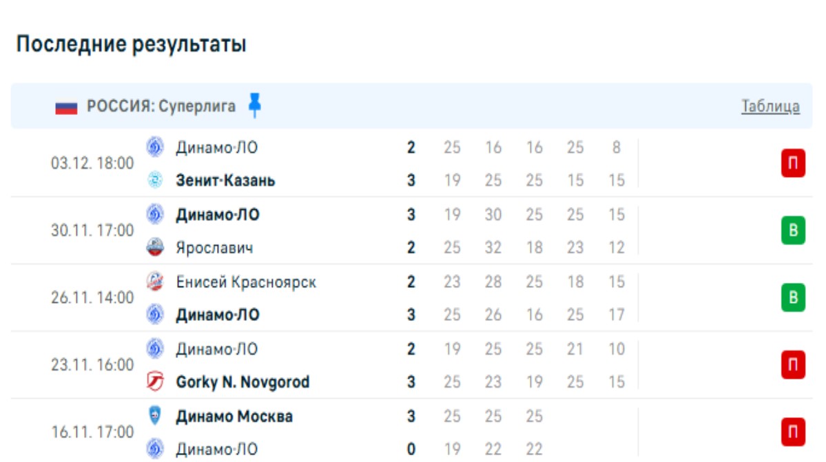 Последние игры команды Динамо-ЛО