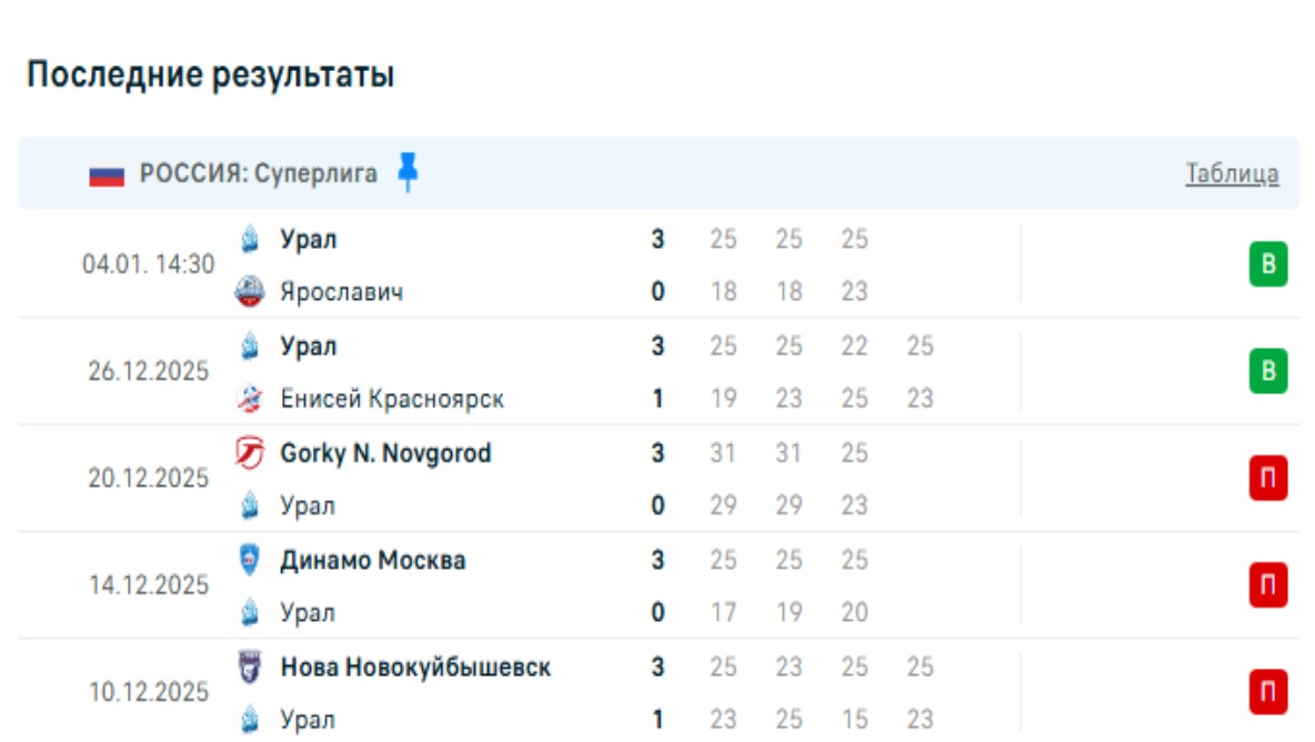 Уральцы поднялись в таблице после 2 домашних побед. Сначала команда Кочинса разобралась с Енисеем в 4 партиях. Красноярцы располагаются в середине таблицы, но смогли победить только в третьем сете.