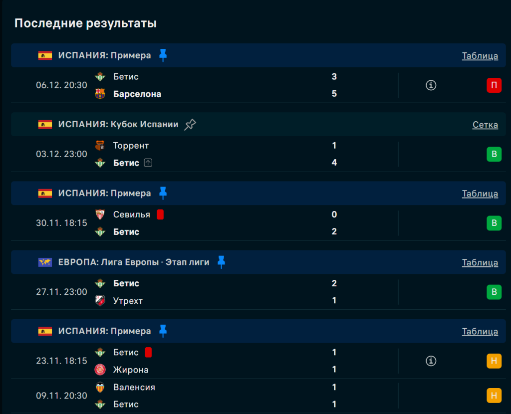 - «Бетис» забил в 9 из 11 последних выездных матчей