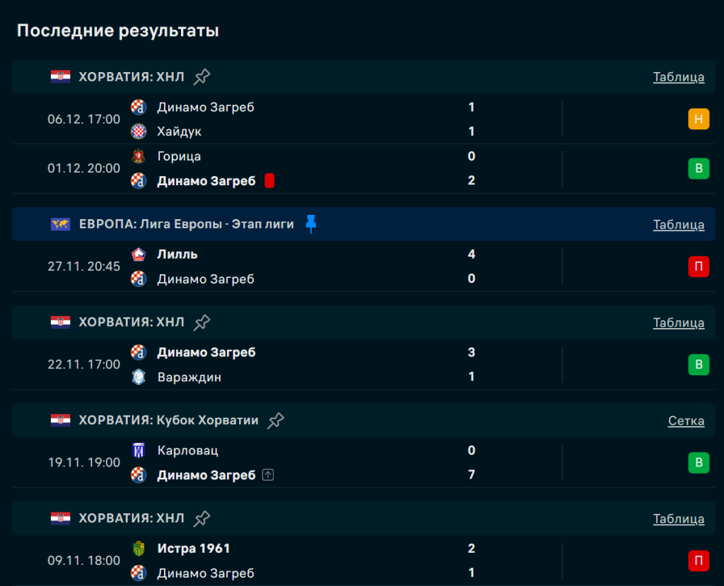 «Динамо» лидирует в чемпионате Хорватии, но в ЛЕ показывает уязвимость против сильных соперников. Команда не забивала в двух последних матчах турнира и пропустила 7 мячей. В составе — кадровый кризис: травмированы ключевые игроки — Лисица, Мудражия, Валинчич, Живкович, Варела. Даже в победе над «Горицей» (2:1) и ничьей с «Хайдуком» (1:1) прослеживается нестабильность. Дома «Динамо» проиграло лишь «Сельте» и «Боруссии» в последних 7 еврокубковых матчах, но против «Бетиса» придётся играть с ослабленной обороной и без игрового ритма в атаке: Дижон не забивает уже 9 матчей подряд.