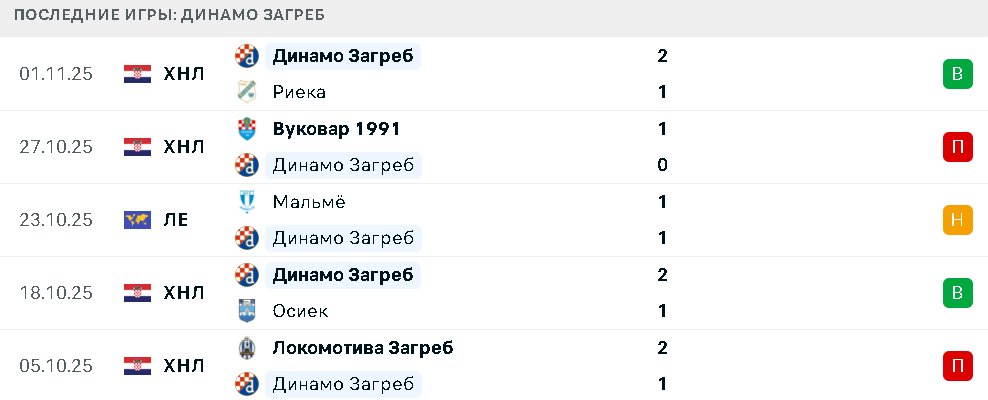 В пяти последних матчах в разных турнирах хорватский клуб одержал победы над Осиеком и Риекой, потерпел поражения от Локомотива и Вуковара, а также сыграл вничью с Мальме.