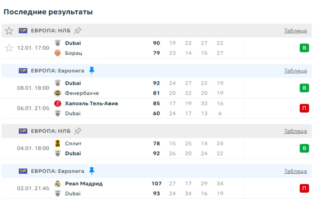 В Адриатической лиге Дубай в понедельник выиграл на своей площадке у аутсайдера сербского Бораца 90:79 и продолжает лидировать в группе А, где еще ни разу не уступил за 12 туров.
