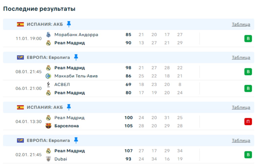 Мадридцы выиграли 3 последних матча в Евролиге, что позволило им вернуться в топ-6. Продолжающуюся успешную серию Реал начал с победы над Дубаем в начале января 107:93. Затем мадридцы расправились на выезде с одним из аутсайдеров французским АСВЕЛом 80:69. В прошлом туре команда Скариоло на родной площадке была сильнее Маккаби — еще одного клуба из нижней части таблицы. Реал проиграл первую четверть 21:25, но затем нивелировал отставание в счете и довел игру до победы 98:86.