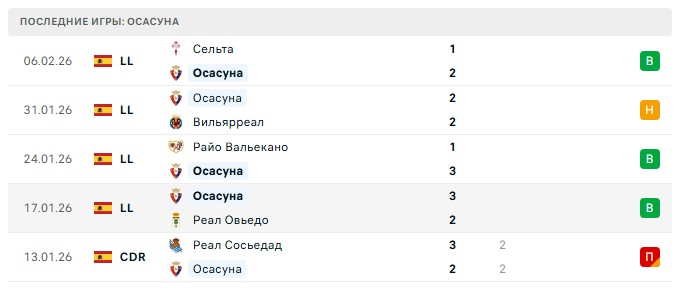История противостояний целиком на стороне «Осасуны»: в последних 17 матчах памплонцы одержали 5 побед при всего 3 поражениях. Более того, «Эльче» выиграл у своего нынешнего соперника лишь один раз за последние 13 встреч. Однако статистика — вещь упрямая, но изменчивая: историческое доминирование гостей разбивается о суровую реальность этого сезона, где «Осасуна» на выезде выглядит бледной тенью самой себя.