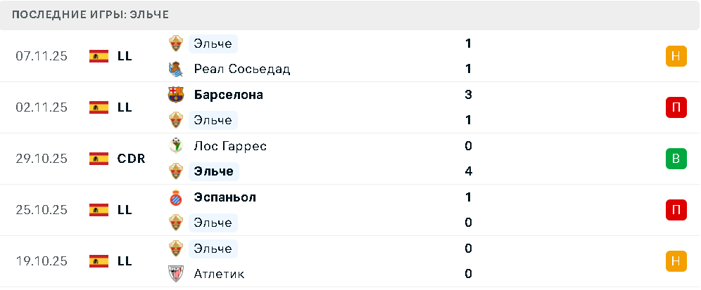 Последние игры «Эльче»