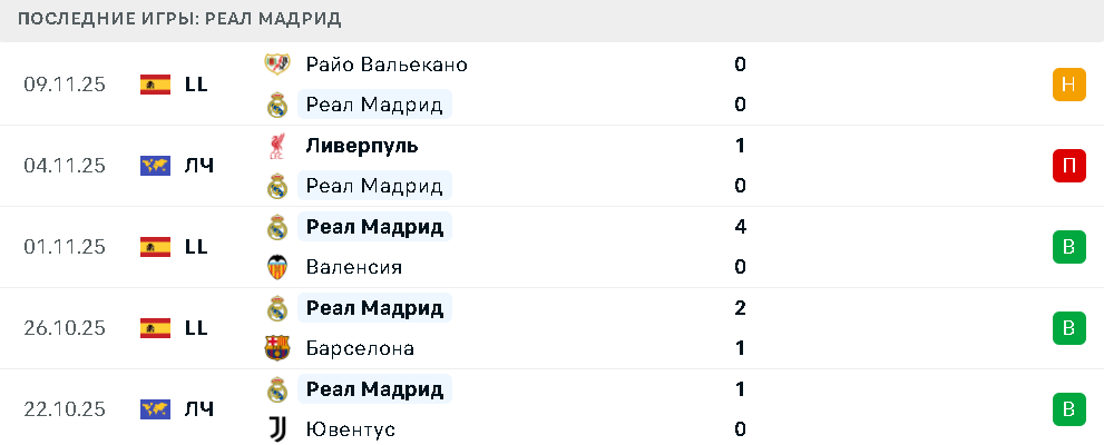 Последние игры «Реала»