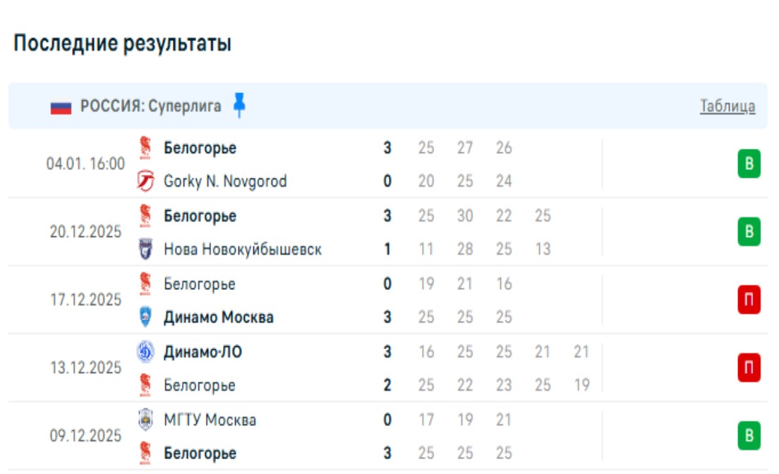 У Белогорья 7 побед в предыдущих 9 поединках. Причем оба поражения на протяжении этой серии для команды Георге Крету последовали подряд. В середине декабря белгородцы уступили сначала Динамо-ЛО на выезде на тай-брейке, а затем московскому Динамо на своей площадке в 3 партиях.