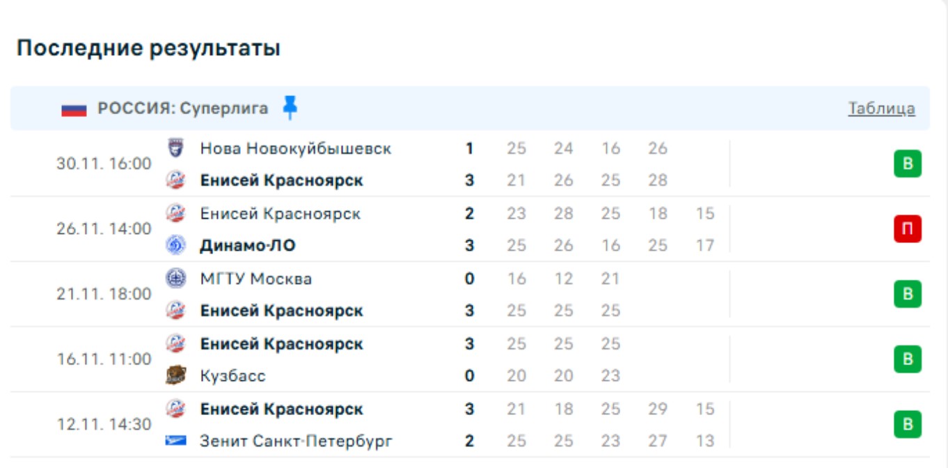 В прошлом туре Енисей на выезде был сильнее Новы. Красноярцы уступили в первой партии, однако затем выиграли 3 сета подряд — 26:24, 25:16 и 28:26, заработав 3 очка.