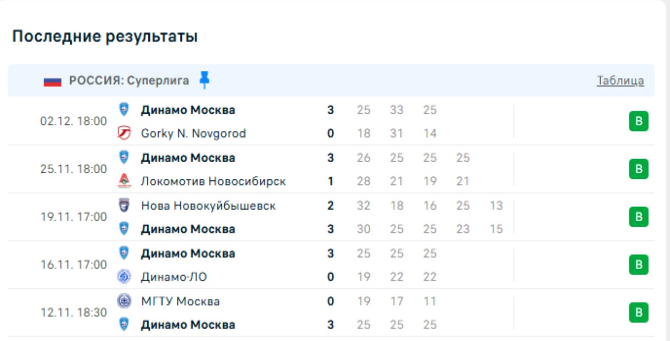 Москвичи допустили пару осечек на старте сезона. С 10 ноября у команды продолжается 6-матчевая победная серия. Причем в большинстве поединков столичный клуб набирает по максимуму очков. Только в игре против Новы на выезде пришлось ограничиться 2 очками, выиграв в решающей пятой партии. Всего у Динамо в это сезоне 8 побед в 10 поединках и пятое место с 23 очками.