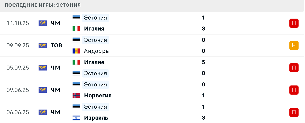 - Сборная Эстонии одержала только одну победу в 10 последних матчах.
