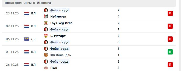 Последние игры Фейеноорда