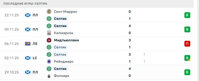 Последние игры Селтика
