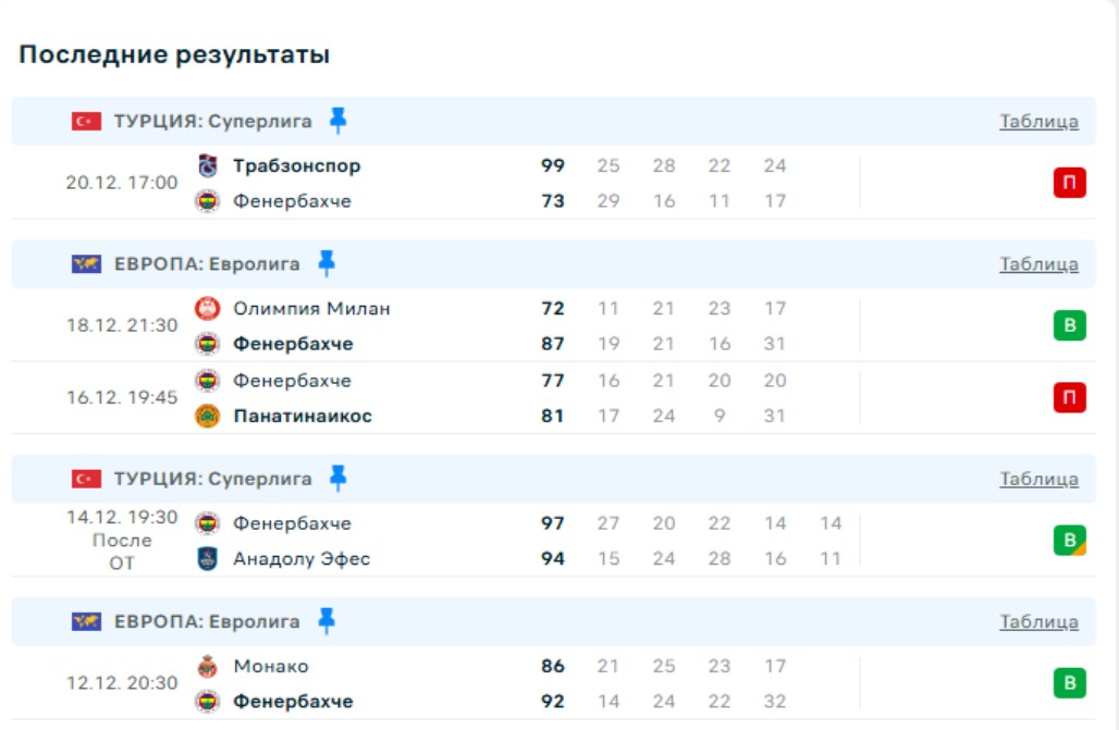 На прошлой неделе у турецкого клуба прервалась серия из 12 побед подряд в Евролиге и национальном первенстве. Фенербахче допустил осечку в матче против Панатинаикоса — 77:81. В результате сейчас команда занимает пятое место с 10 победами после 16 поединков. При этом все клубы, расположившиеся в таблице выше, провели на 1 матч больше.