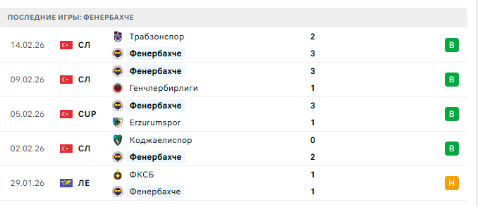 Последние игры Фенербахче