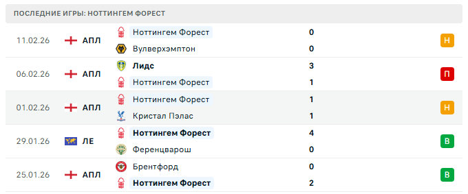 Последние игры Ноттингем Форест