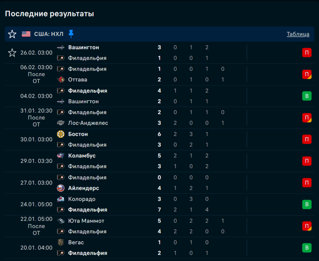 Последние игры Филадельфия Флайерз