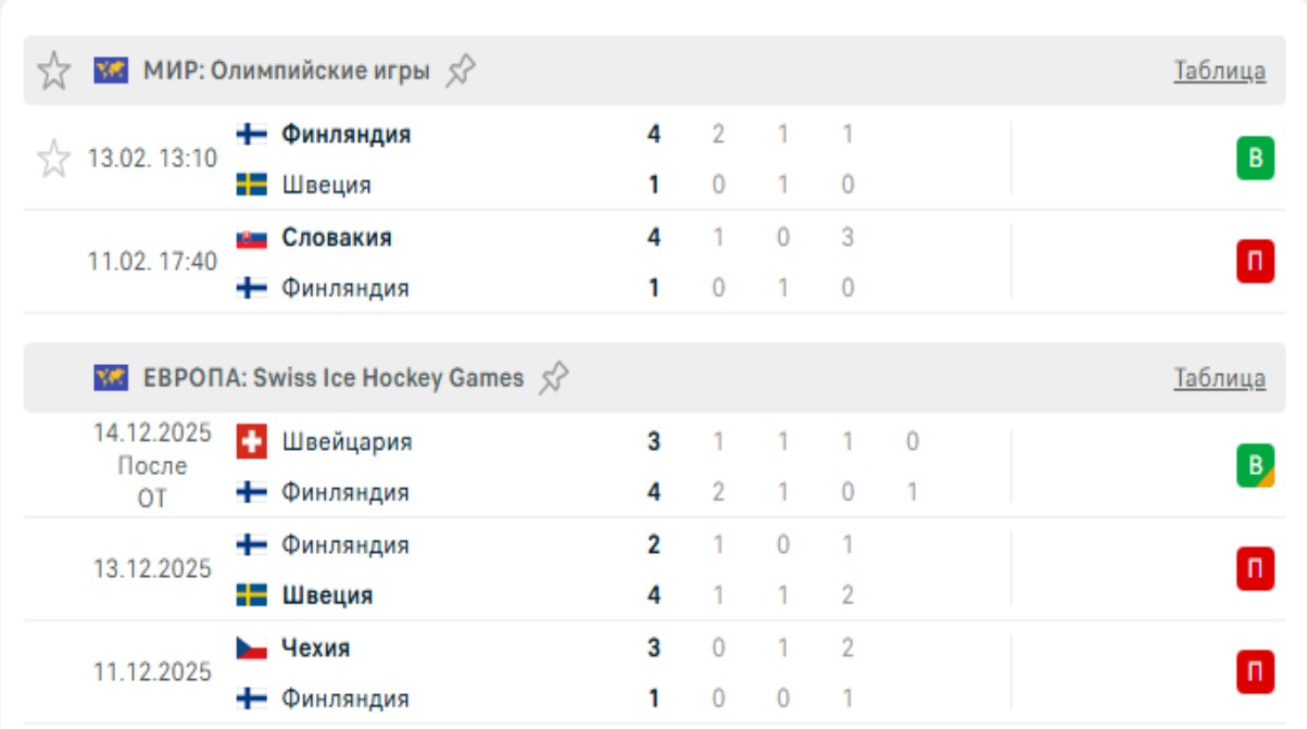 Последние игры Финляндии