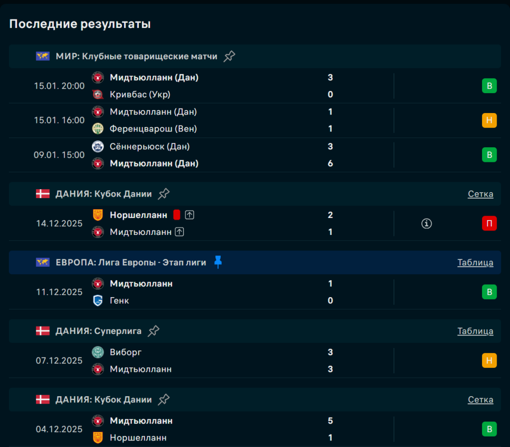 Последние игры Мидтьюлланд