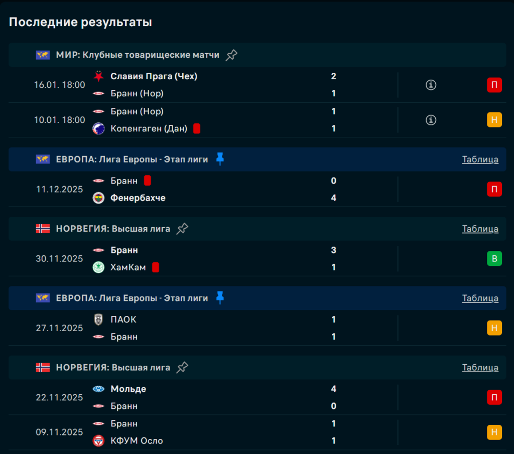 22 января, 20:45 МСК, «Брискехус», Берген. Лига Европы УЕФА, 7-й тур общего этапа. «Бранн» занимает 22-е место с 8 очками и не проводил официальных матчей с декабря. «Мидтьюлланд» — 2-й с 15 очками, уже обеспечивший себе плей-офф. Норвежцы проиграли «Фенербахче» (0:4) в последнем домашнем матче турнира, датчане выиграли у «Селтика» (3:1) и «Генка» (1:0). Гости играют второй матч за неделю, хозяева — первый в 2026 году.