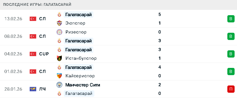 Последние игры Галатасарая