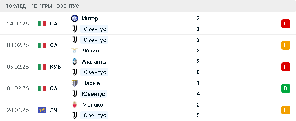 Последние игры Ювентуса
